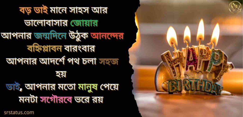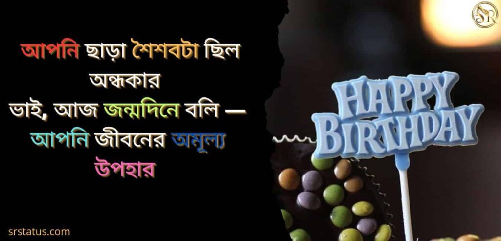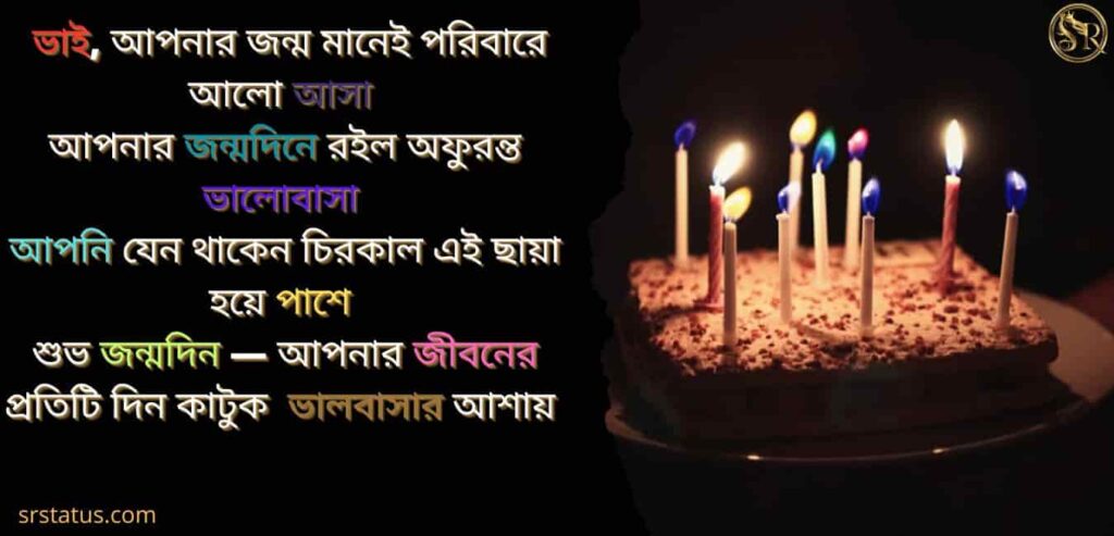 ভাই, আপনার জন্ম মানেই পরিবারে আলো আসা, আপনার জন্মদিনে রইল অফুরন্ত ভালোবাস, আপনি যেন থাকেন চিরকাল এই ছায়া হয়ে পাশে, শুভ জন্মদিন — আপনার জীবনের প্রতিটি দিন কাটুক ভালবাসার আশায়।